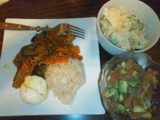 昨日作った麻婆なす丼とポテトサラダとねぎとろアボカド☆