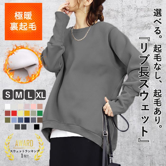 【ポケ有→1590円〜!クーポンで!】 裏起毛登場!【楽天1位★14万枚突破】 トレーナー レディース 暖か おしゃれ コットン混 大きいサイズ スウェット メンズ リブ長 トップス 長袖 無地 [郵3]^t015+t1036^ WT楽天市場2,590円~${EVENT_LABEL_01_TEXT}