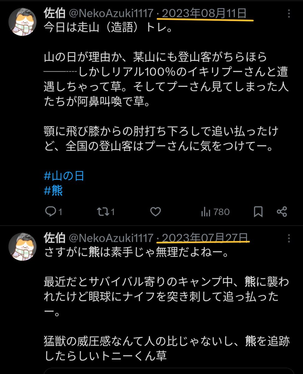 - ランニングで足腰鍛えるて…、馬鹿丸出しやなこいつ(苦笑)。 後は熊(苦笑)。 pic.twitter.com/jUsDxDJVSG posted at 15:07:56