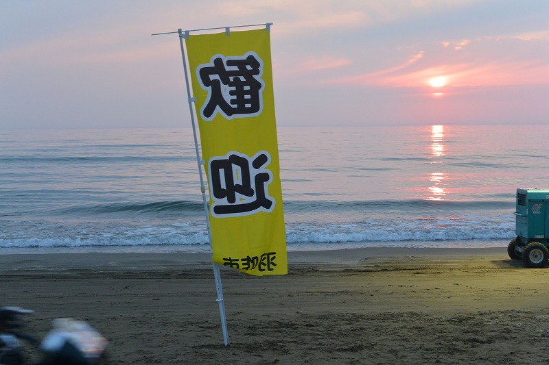 夕日は水平線に半分