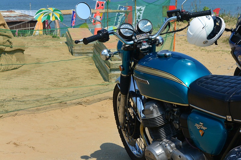 浜の方には昨日ゴールしたと思われる ライダーとバイクが多数