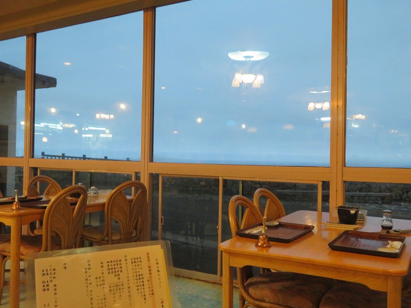 窓の明かりに目を向けると 食堂内には泊客はおらず 仲居さんがあとかたずけ