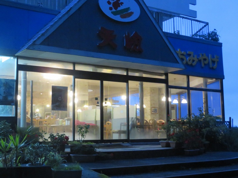 先ほどまで 食事をしていた場所の窓明かり