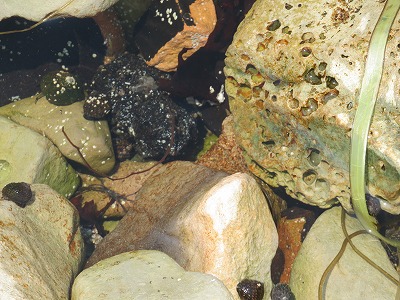 コンクリの通路横の海には 小さな巻貝やヤドカリ