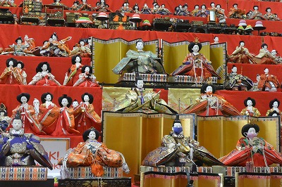 多くのお雛様名階段に並びますが