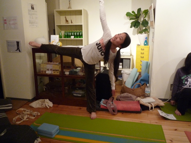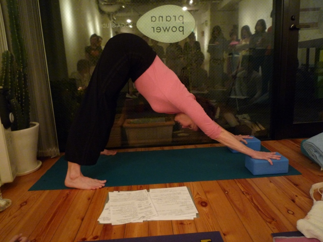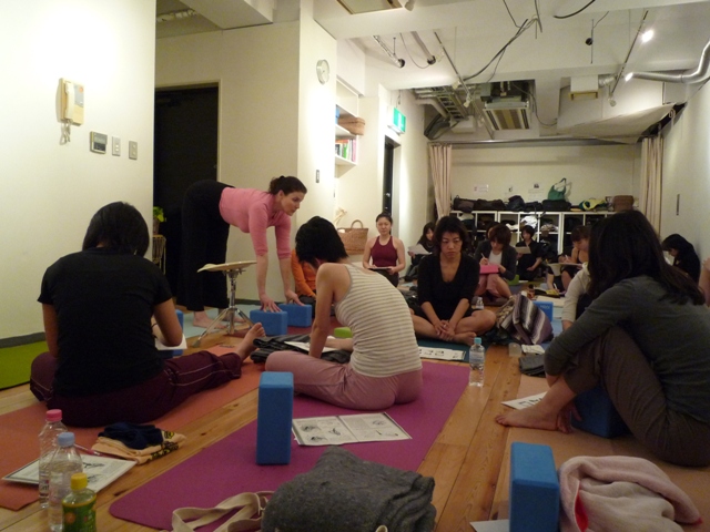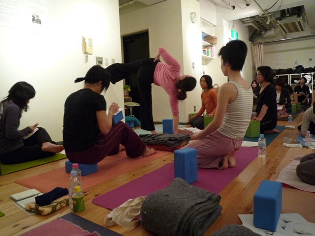 Yoga Therapy WS For Her毎日毎日お勉強三昧のakkiでございます昨日は、NYのアイアンガーteacherJeanne-Marieによる『女性のためのyogaセラピーWS』です女性が共通して抱える生理や妊娠にまつわる悩み・問題にフォーカスを当てて、ヨガのasanaを通して、どのように身体を癒すかを学びましたさすがアイアンガーteacherプロップ満載ですjeanne-marieのまねをして、halfmoonで足を床と垂直に上げてみました手がとどかなぁぁい足の長さが全然違うんだもの(笑)