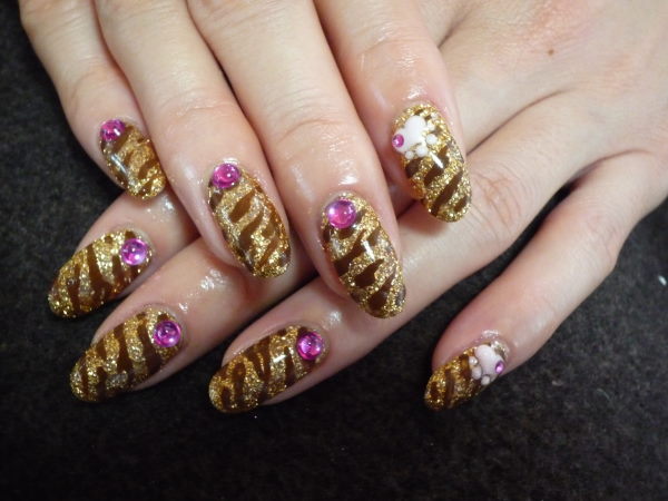 New Year nail♪ 前回はシンプルだったので、 今回はがっつり(笑) 来年の干支にちなみ・・ トラ柄nailです 猫ちゃんに見えるけど・・ トラってことで トラもネコ科だし MnailのM店長 いつもありがとうございますっ