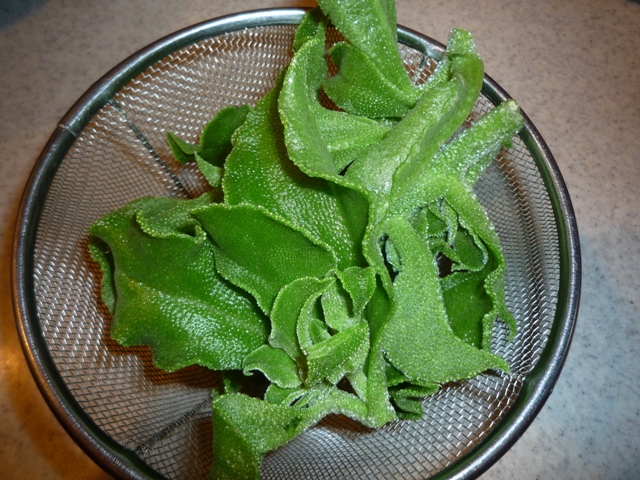 霜や水滴を思わせるような、キラキラ、ぷちぷちしたものが、茎や葉の表面を覆っていて、お野菜とは思えない感じ