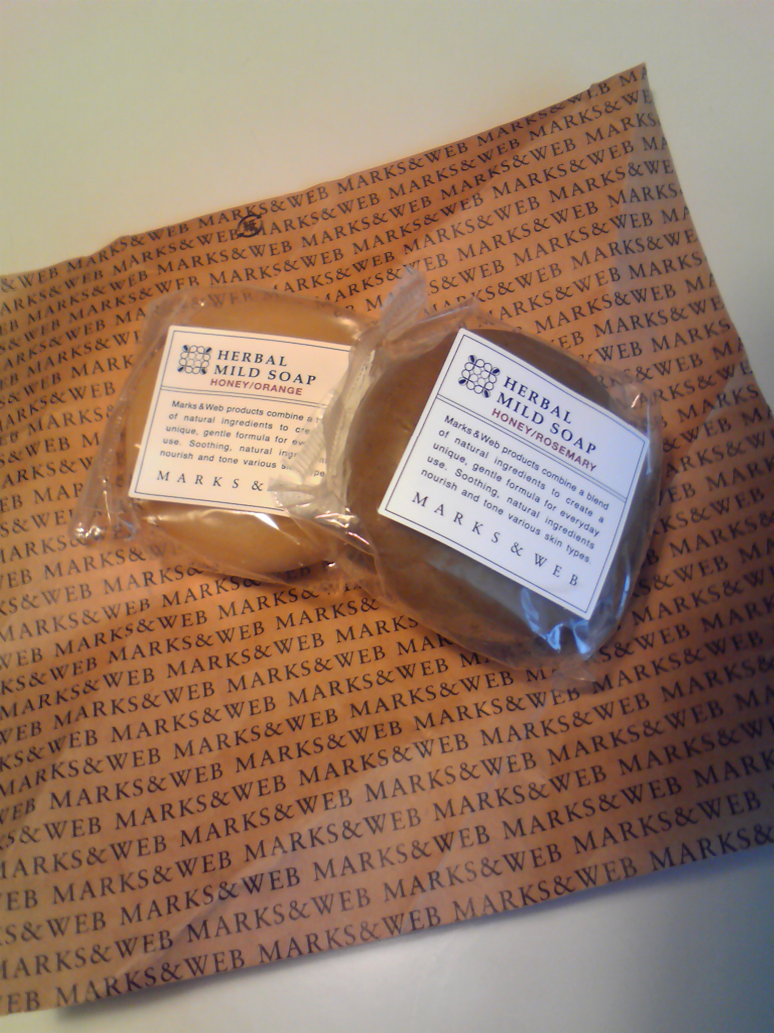 MARKS&WEB♪MARKS&WEB HERBAL MILD SOAPお友達からのうれしいpresentROSEMARYとORANGEどっちもすごくいい香り石鹸大好きだから すごくうれしかったぁ!presentって人を幸せにするね最近、腰痛が全然よくならなくって、少しblueだったのだけど、友達とおしゃべりしてたら、元気になれましたまだまだおしゃべりし足りなかった感じ(笑)ホントにありがとう