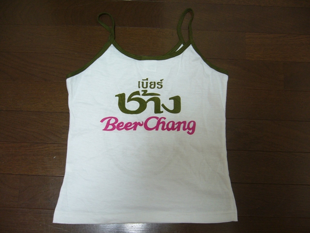 BeerChang キャミ前に・・「タイフェスティバル」とかなんとかいうイベントで見かけたときに・・いいなぁって思ってたビールのTシャツのキャミver.Tシャツより、キャミのほうがウェアとして使えるしってわけで、3枚色ちで大人買いビール缶モチーフが気に入っています