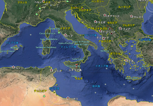 地図の中の地中海のほぼ真ん中に浮かぶ島。そこが今回の「直行便で行けないその先の場所へ」