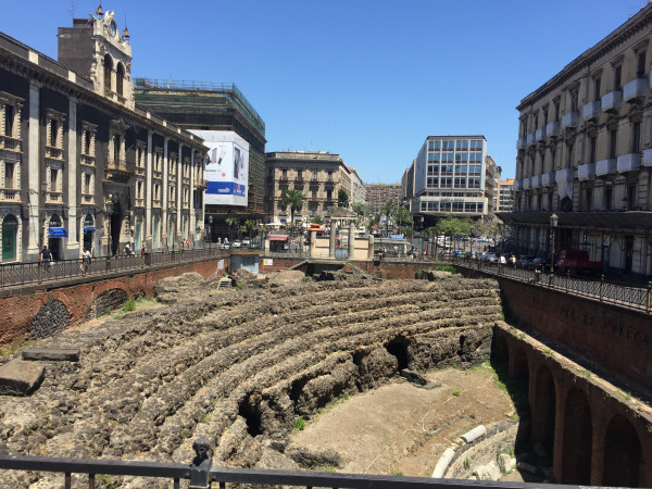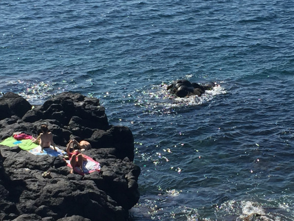するとなにもここでなくても・・・って場所で日光浴中のシチリアンギャル(っぽい女子)3人に遭遇。にしても何故ここなんだ?謎。