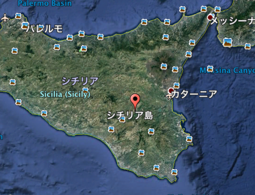 のスタートであるイタリアのシチリア島。ブーツに例えられるイタリアのつま先で蹴られているボール。そこががシチリア。シチリア島は地中海最大の島だけあってかなり大きい。全ての見所を回るのは無理。
