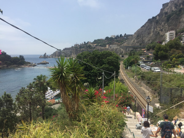 タオルミーナの海といえばここ、イソラ・ベッラへ直行。ビーチへのアクセスが分かりにくいかもだけど、バス停で降りてすぐの階段を下ればそこがビーチ。