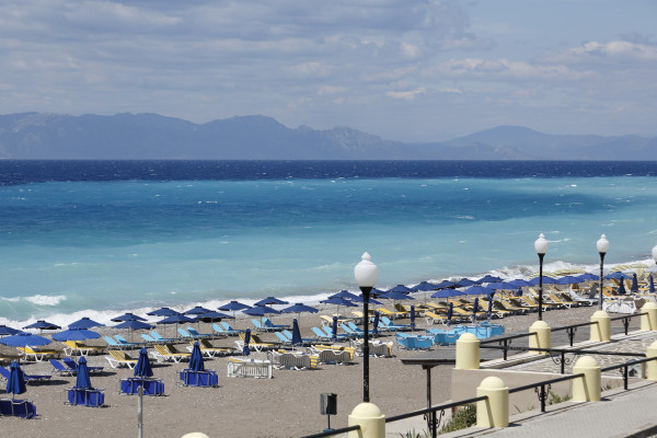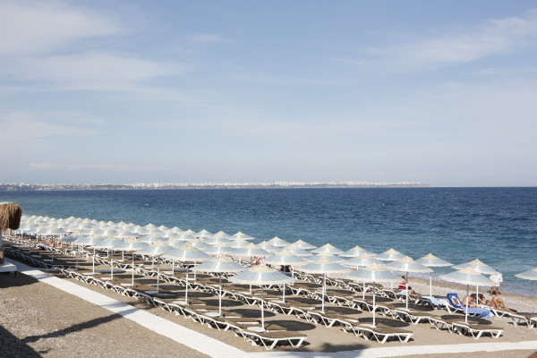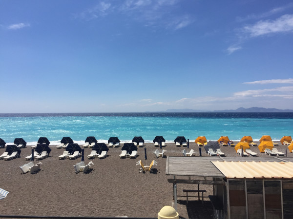日本のように安っぽいパラソルではなく、固定式の立派なものも多く、風が吹いてもびくともしそうにないのがまた良い!