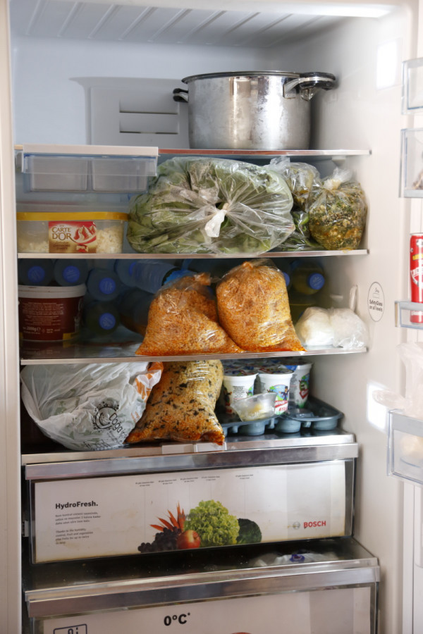 お母さんの場合、予め冷蔵庫に作り置きしてある具がびっしりだ。