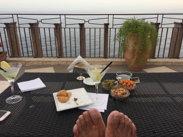 行儀悪くてすいません。海一望ですっかり寛ぎモード。