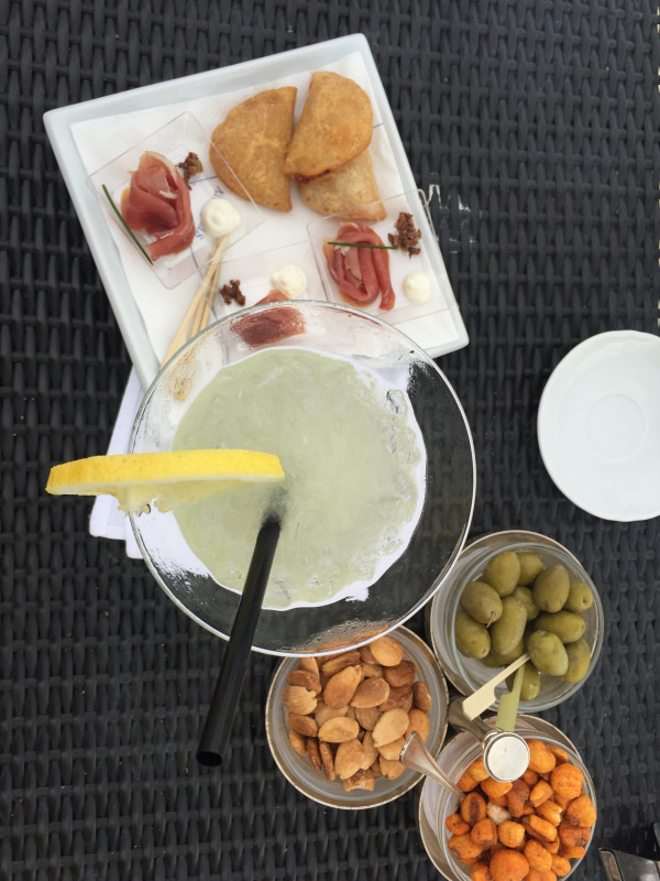 着いたのは夜の営業開始の前だったため、テラスバーで一杯やりつつ開店を待つことに。