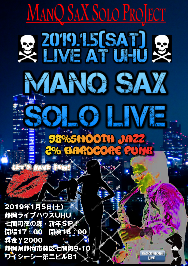 MANQ SAX SOLO LIVE 20190105 AT UHUやってきました掲題のライブ ご来場頂いたお客様 タイバンの皆様 UHUのスタッフの皆様 本当に有難うございました 今回写真すくないですね いろいろ思うところあるライブとなりましたが 今年最初のライブを無事終了させました ありがとうございましたWWW マイカメラ設置しました