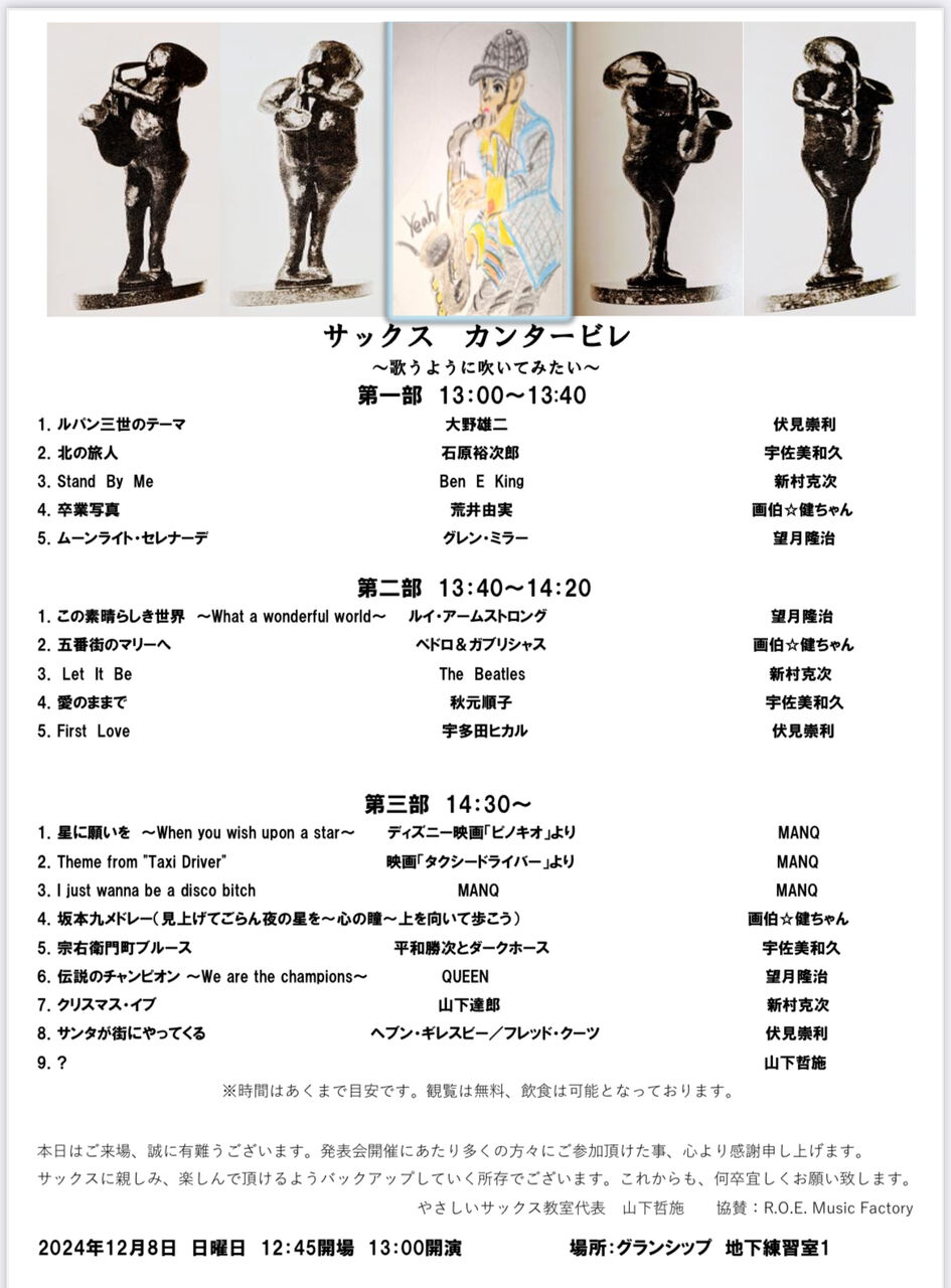 サックス教室の発表会ということですが