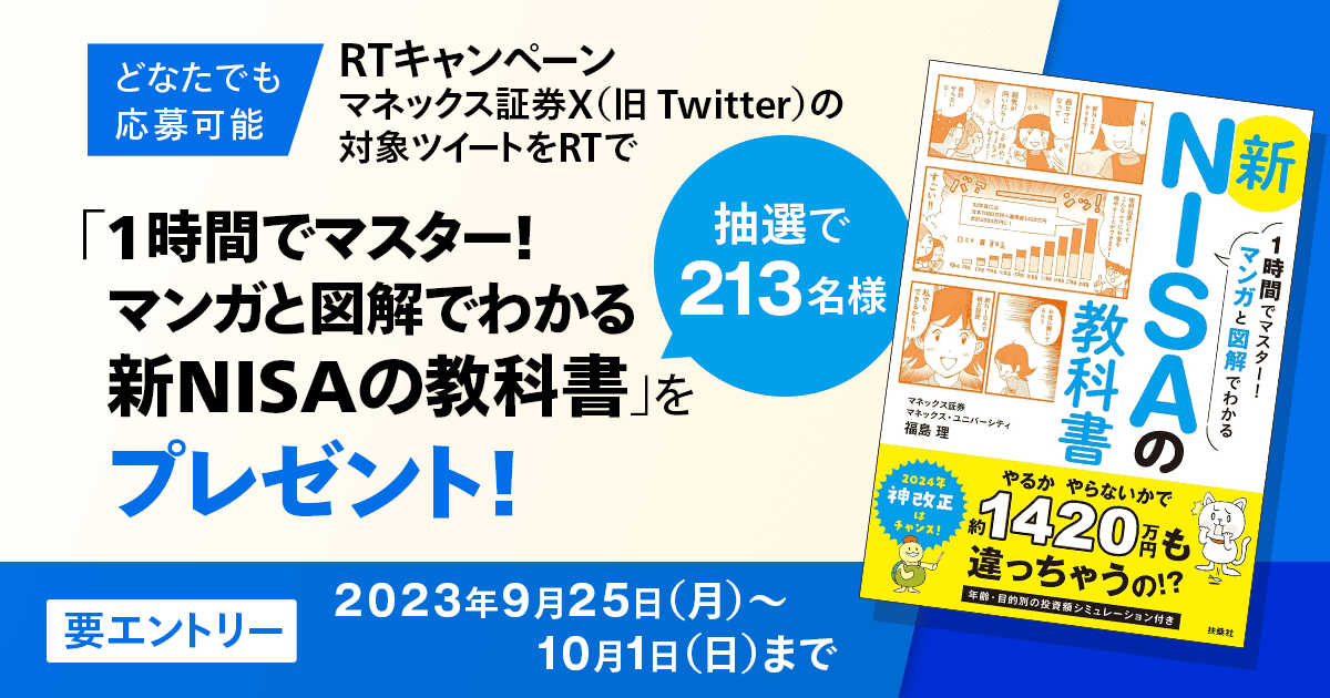 マネックス・ユニバーシティ福島理の「1時間でマスター!マンガと図解でわかる 新NISAの教科書 」をプレゼント!