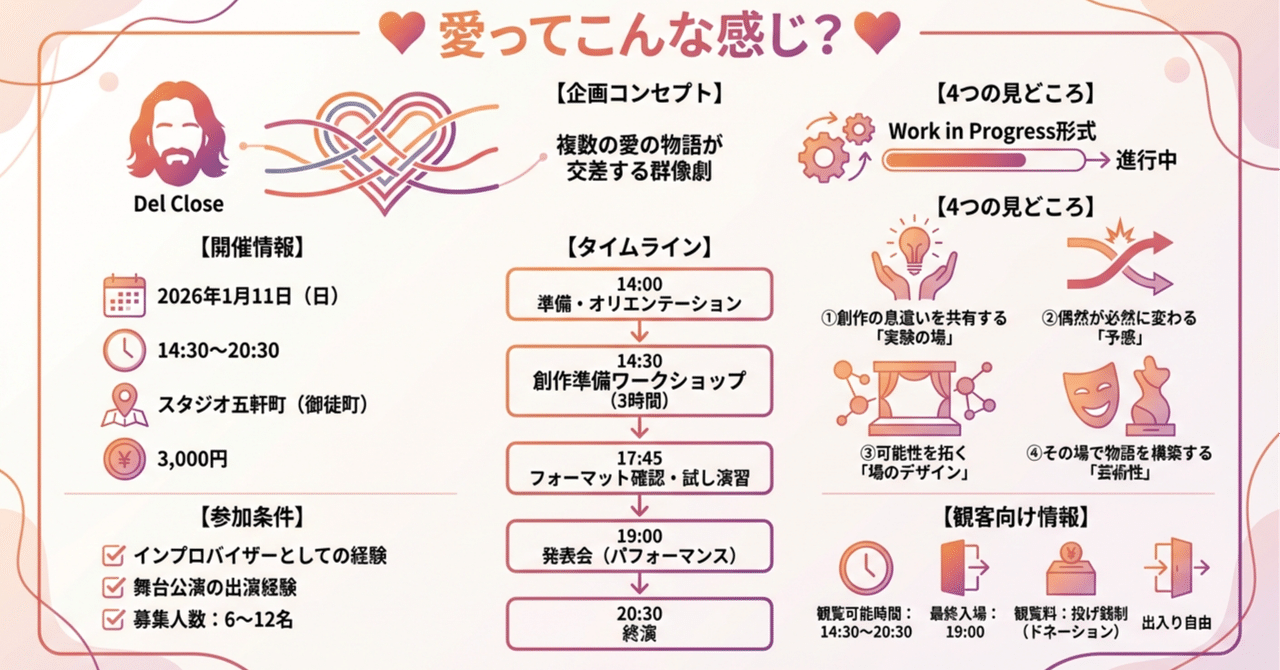 - ※1/11開催の「デル・クロース編:愛ってこんな感じ?〔Work in Progress〕」とのセット割引あり(5000円)