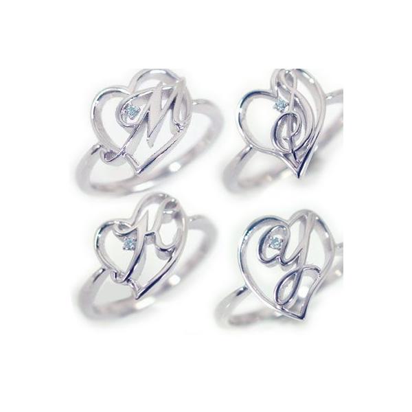 ブルーダイヤを留めたオープンハートイニシャルリング