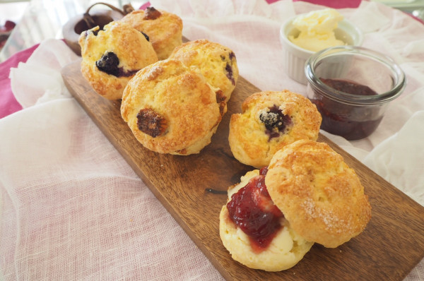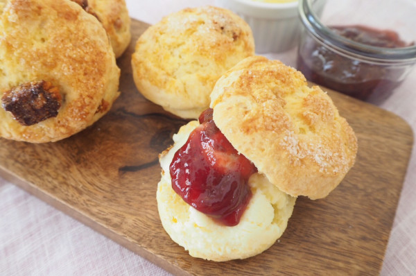 クロテッドクリームとフルーツの自家製ジャムをつけて。