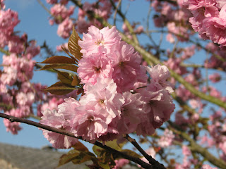 夫が結婚するずっと前に庭に植えた日本八重桜が立派に大きくなり、沢山の花をつけるようになりました。
