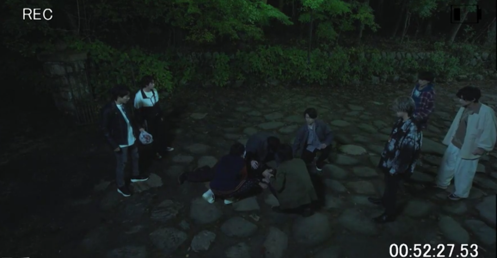 そのシーンを防犯カメラで捉えているという、物騒で、かつリアルフェイクっぽい思わせぶりな雰囲気満々で、全員集合のシーンからのスタートです。