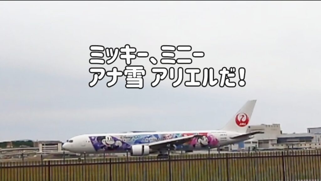 偶然、JALのディズニー機が到着した所も撮影できました。