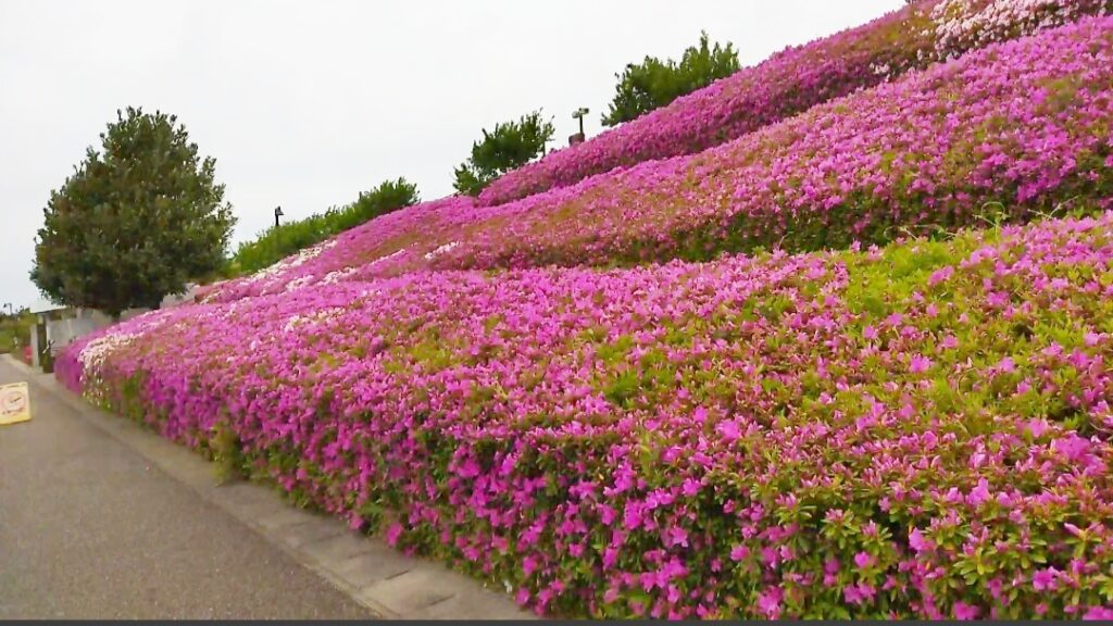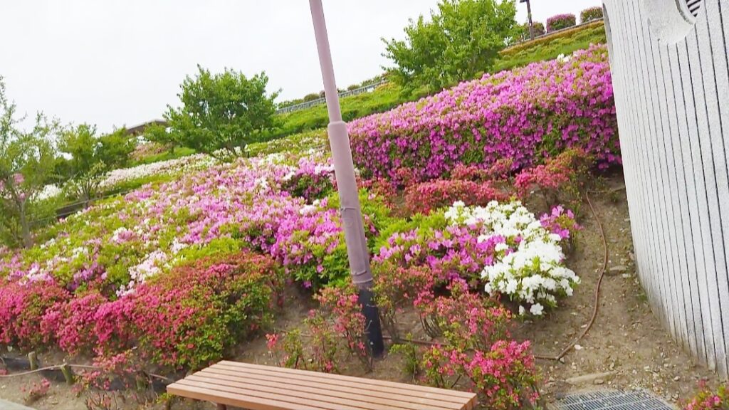 斜面を利用して、たくさんのつつじが綺麗に咲いていますので、満開の時期は大変見応えがあります。