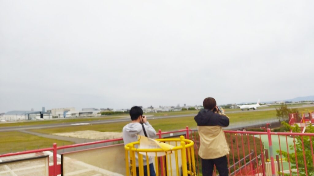 ちなみに、伊丹スカイパークは飛行機の撮影スポットなのですが、先程の迷路の遊具の上から撮影する方がとても多いです。