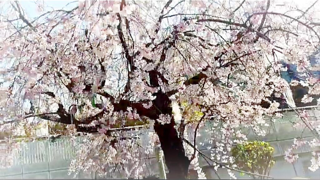 有岡城跡の入り口は、しだれ桜がお出迎えしてくれます。