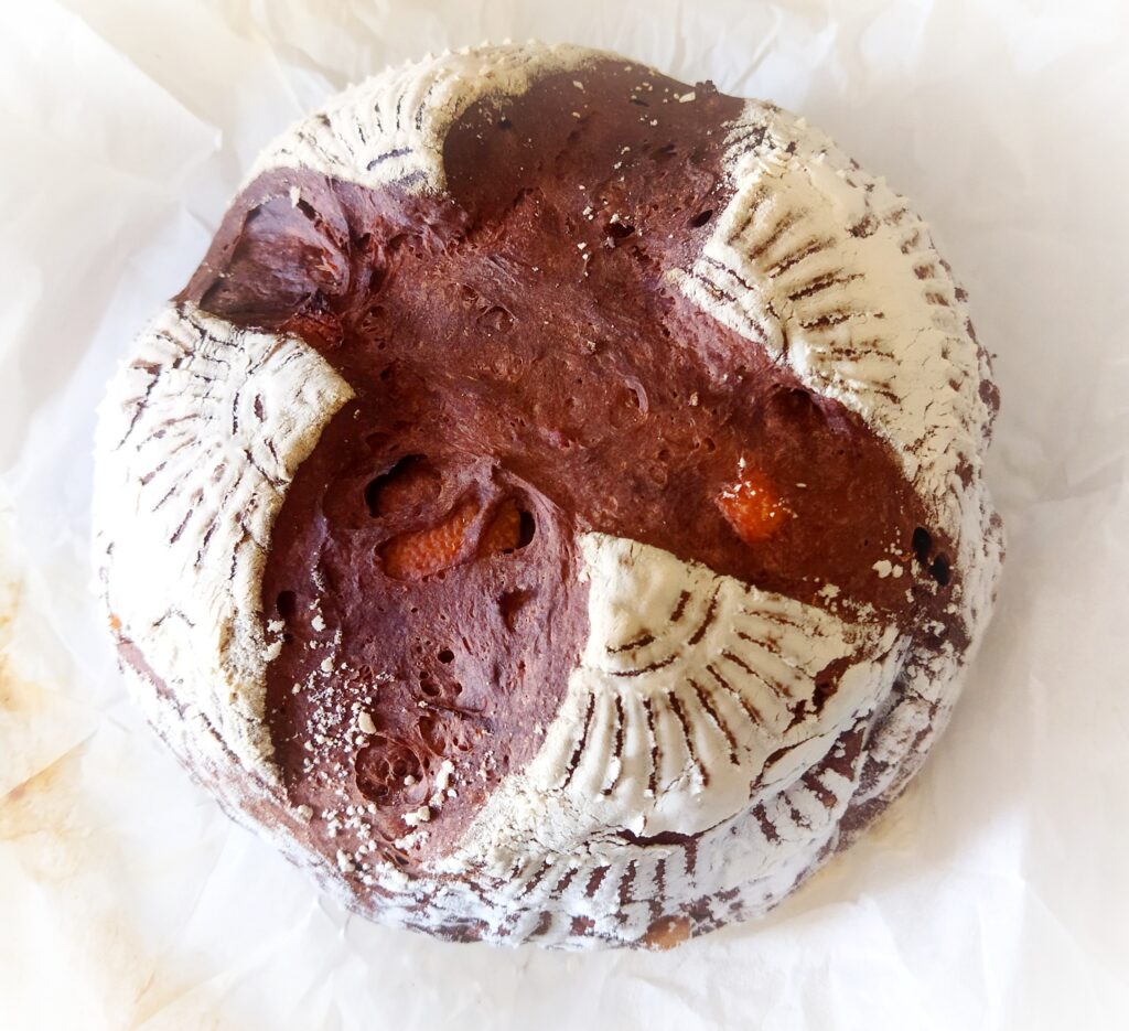 カンパーニュは、ココア生地に、文旦ピールを入れたものです。