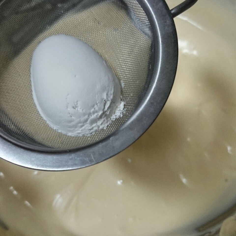 薄力粉はふるってから加える。(少量なので茶漉しでやってます)