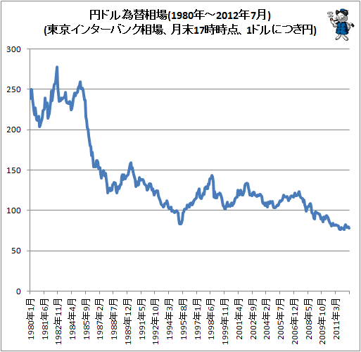 民主政権時の藤井裕久財務大臣が円安政策を否定しさらに円高を推し進める。