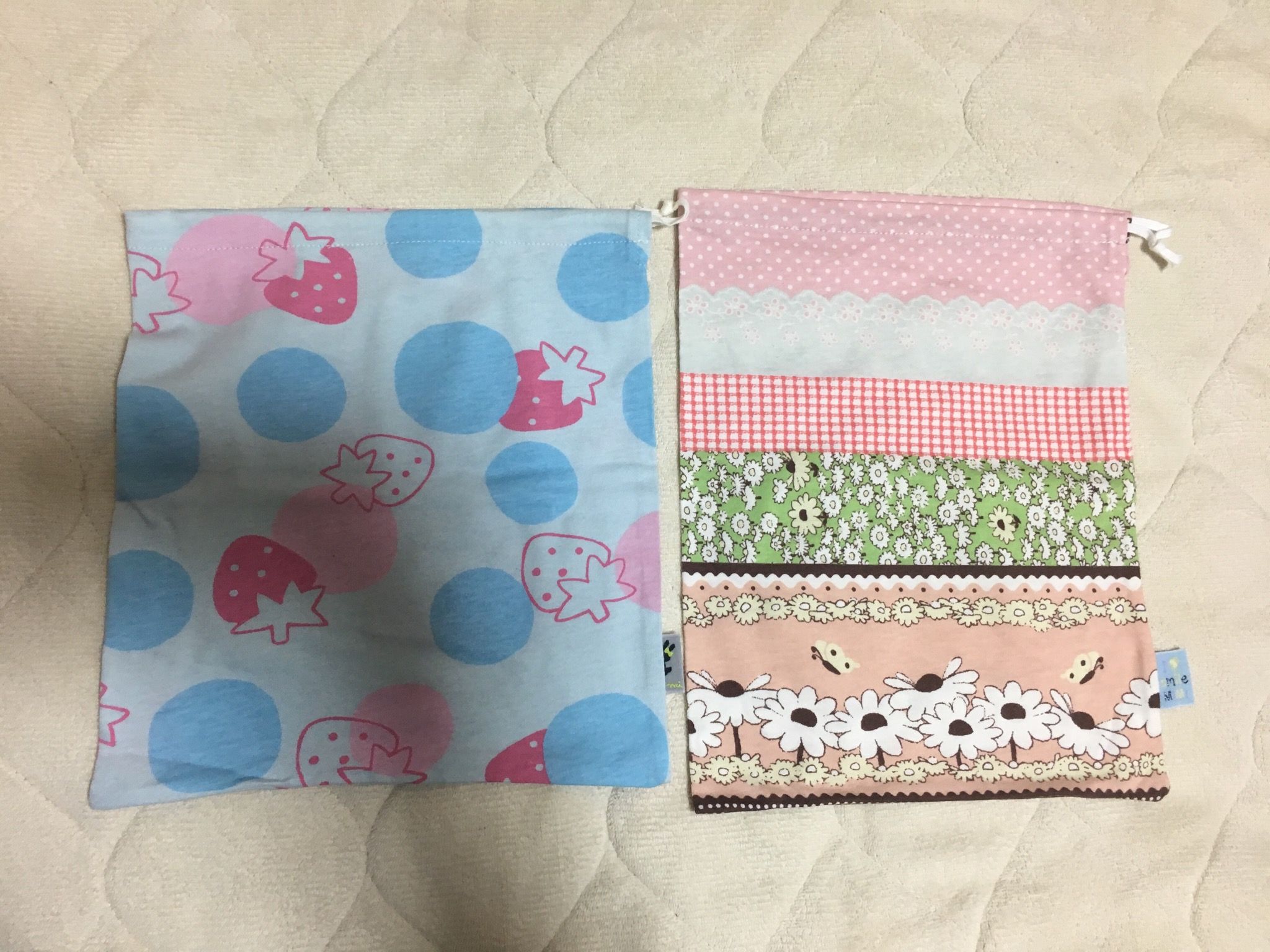 ↑巾着も全然可愛いのが無かったです(T_T)これが精一杯かな…でもこの巾着は給食ナフキンとお箸を入れるのにちょうどいい大きさなので普段使いしようと思います…