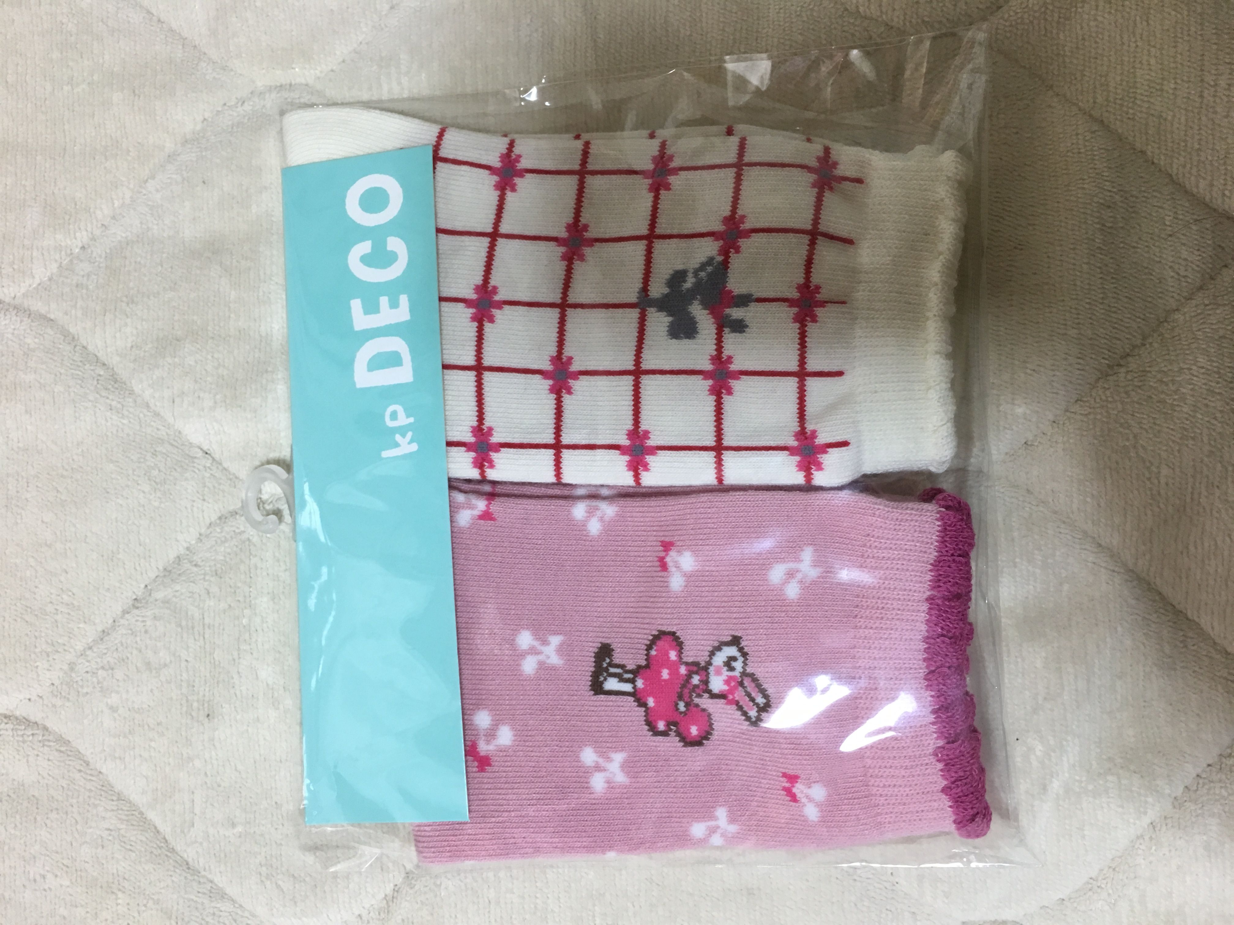 ↑ソックス ピンク 120cmノベルティの金額合わせにソックスを選びました。本当はチェックのシリーズを今回購入予定で赤のチェックセットにする予定だったのですが黄色セットのマネキンを見てどちらにするか迷い…娘がいなかったので色を決めれず確実に欲しいとわかっている別のものを買うことにしました。