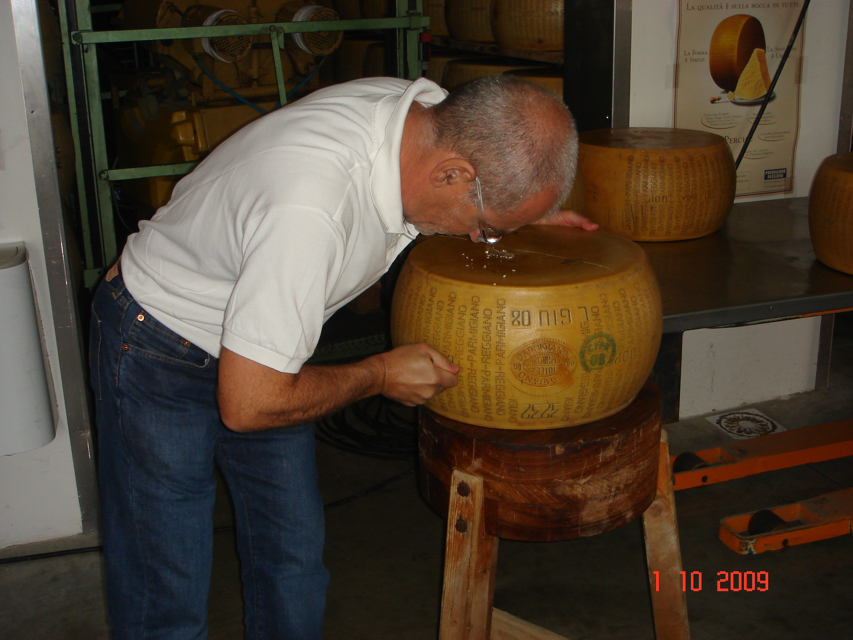 パルミジャーノ・レッジャーノは、目、耳、鼻、口、手を使ってテイスティングします。
