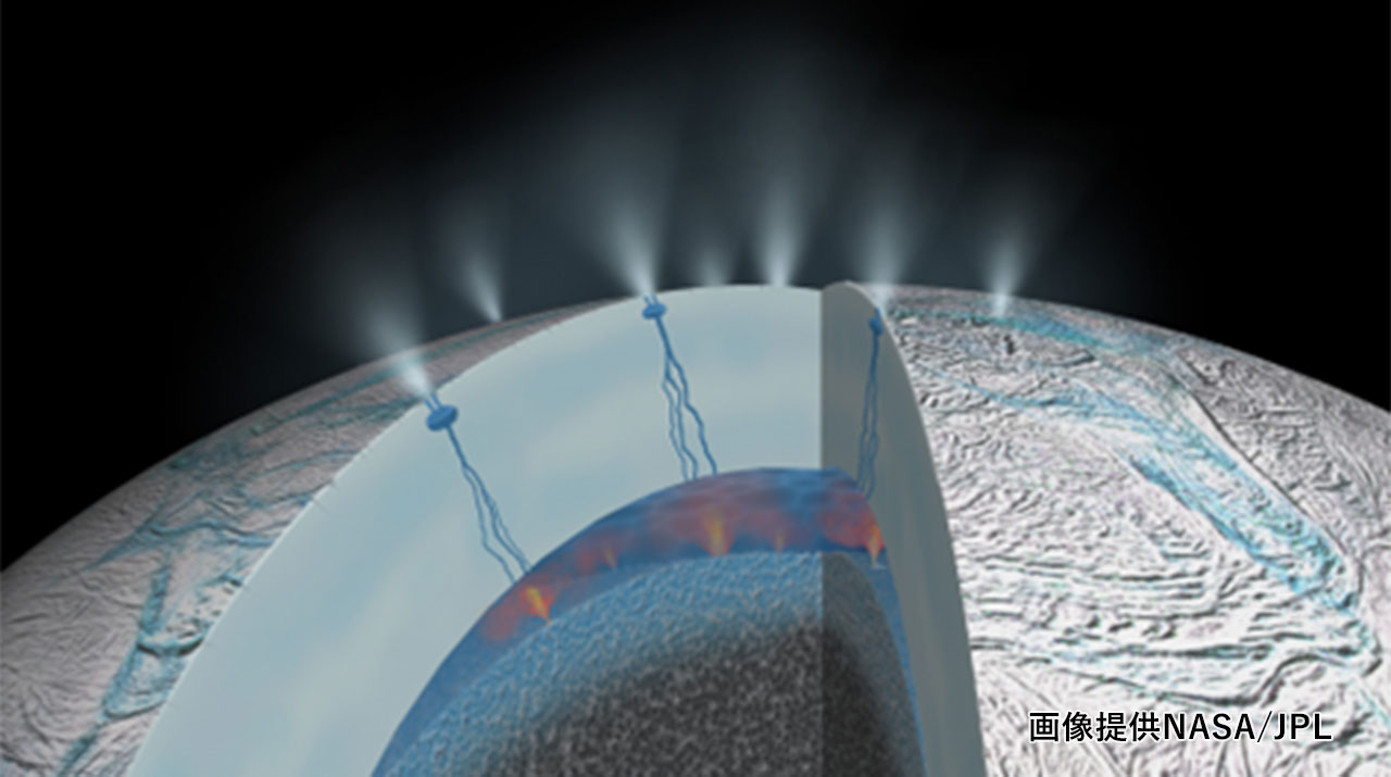 東京工業大学 国際先駆研究機構 地球生命研究所の関根康人所長/教授、丹秀也研究員(現 海洋研究開発機構 超先鋭研究開発部門 ヤング・リサーチ・フェロー(Young Research Fellow))、海洋研究開発機構の渋谷岳造主任研究員らの研究チームは、日欧米による探査と実験の綿密な連携によって、エンセラダスの海に地球生命の必須元素であるリンが、地球海水の数千から数万倍という高濃度で濃集していることを明らかにした。土星の衛星エンセラダス[用語1]は、内部に液体の地下海を持ち、生命を育む熱水噴出孔や複雑な有機物も存在する。生命存在可能な条件を満たす天体として注目を集める。欧米チームはカッシーニ探査機[用語2]のデータから、地下から噴き出した海水中にリン酸[用語3]を含む粒子が含まれることを明らかにした。日本チームはエンセラダス内部を再現する実験を行い、リン濃集要因が、アルカリ性かつ高炭酸濃度の海水と岩石との反応にあることを突き止めた。