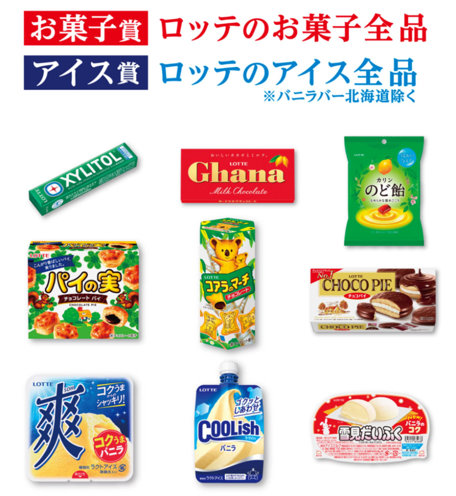 - アイス賞・・・ロッテのアイス全品※バニラバー北海道除く