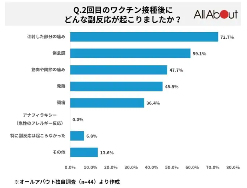 アンケート調査では発熱が半数ほど出てますね。