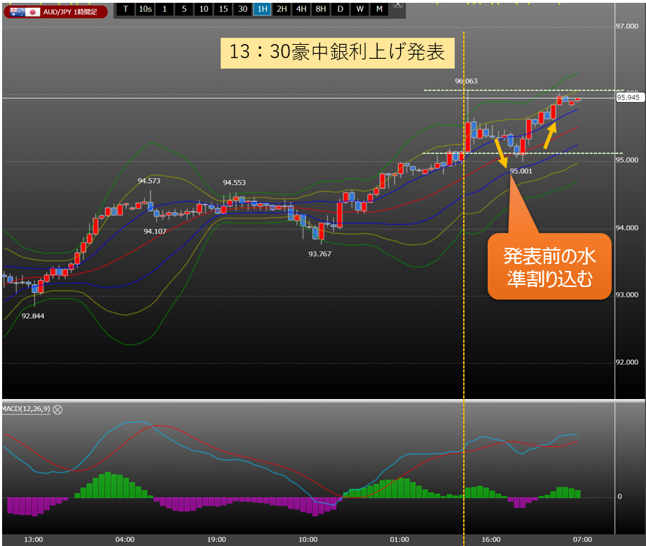 政策金利を発表した直後の値動きはどういった特徴があるのでしょうか。