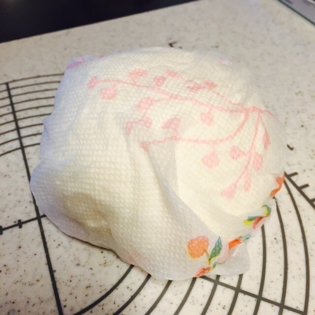 ガス抜きをして濡らしたキッチンペーパーに包み