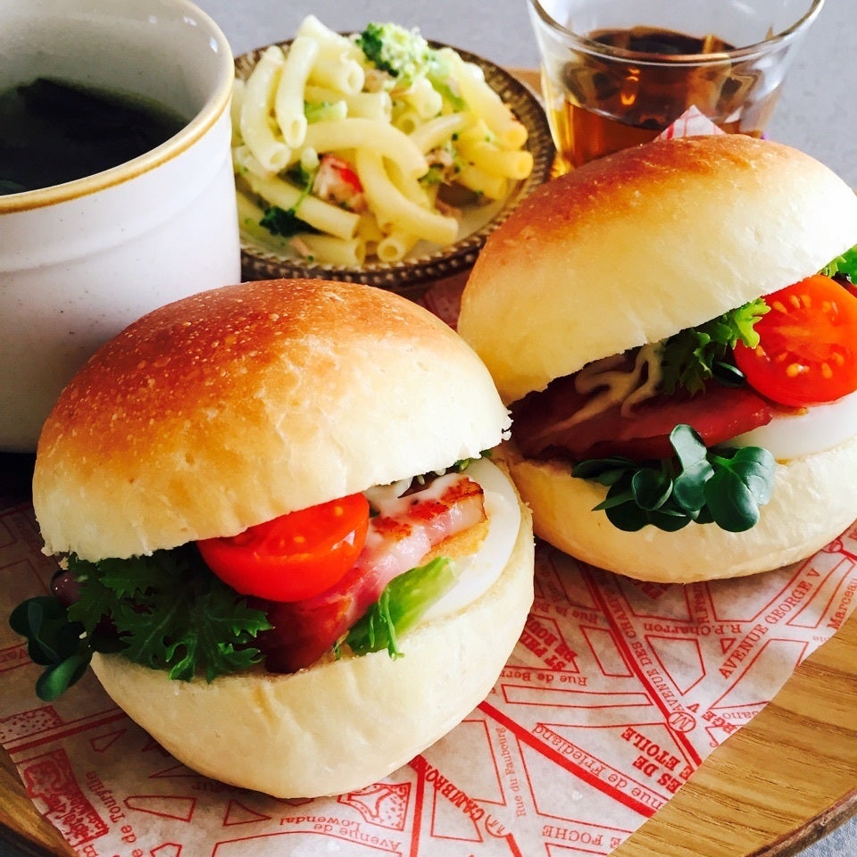 シンプルな丸パンを焼きました♪ 先週 長女がインフルBになったときにお昼ご飯ように作った丸パン♡全く食欲がなかった長女…この丸パンサンドイッチは食べてくれました♡ 詳しい作り方 01 厚切りベーコンとゆで卵とわさび菜とかいわれとプチトマトをサンド〜♡まん丸でかわいいやろ??♡ marksweetsさんのお料理をもっと見る