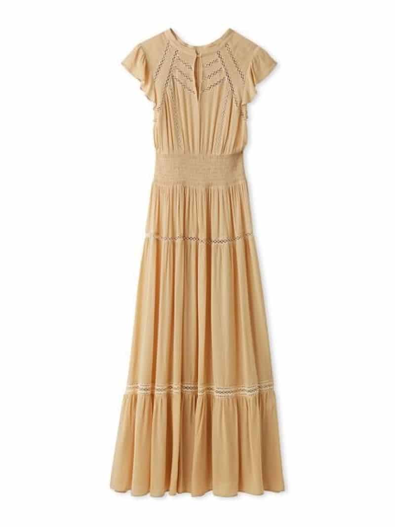 程よくポイントポイントにレーステープを配置し、透け感あるワンピースに仕立ててあります。