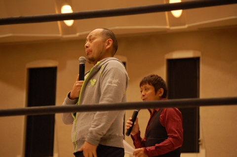 まずは、八木レフェリーとリングアナ菊池さんのオープニングトーク。