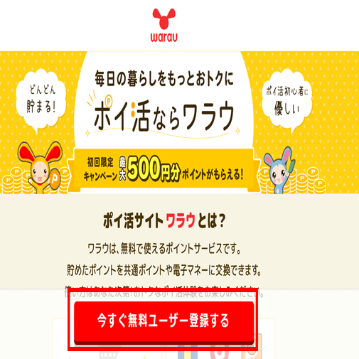 当記事からワラウに登録することで、最大500円分のポイントがGET出来るキャンペーンに参加可能です!ぜひこの機会にご登録を!