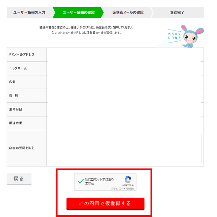 ④情報確認画面で画像(reCAPTCHA)認証後、「この内容で登録する」をクリック